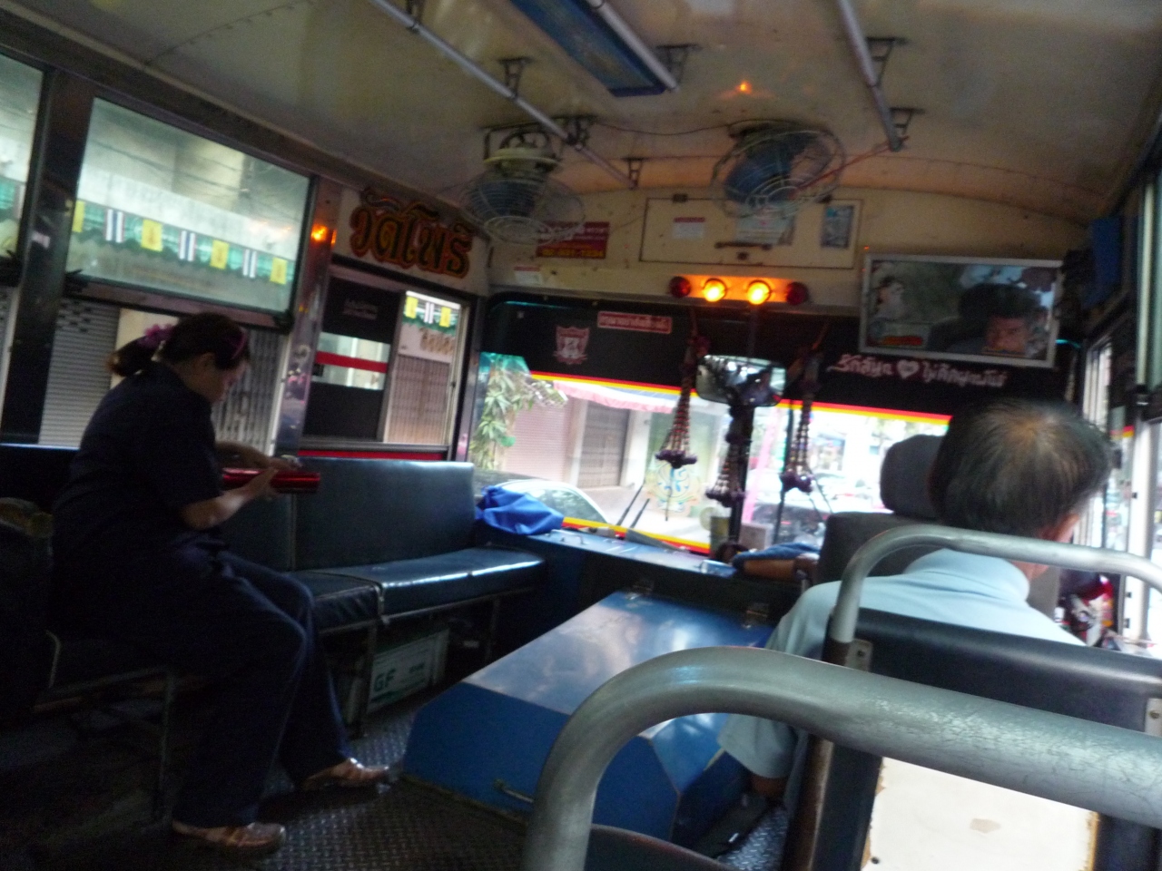 バンコクの中心地のサイアムエリアからワットプラケオなどがある王宮地区に行くときに使用しました。というのは、タクシーを捕まえて値段を聞いても明らかにぼったくる値段ばかりを提示され、もうこりごりと思いはじめた頃、目の前にバスが通り、路線バスで行けばいいのだと気づき利用しました。