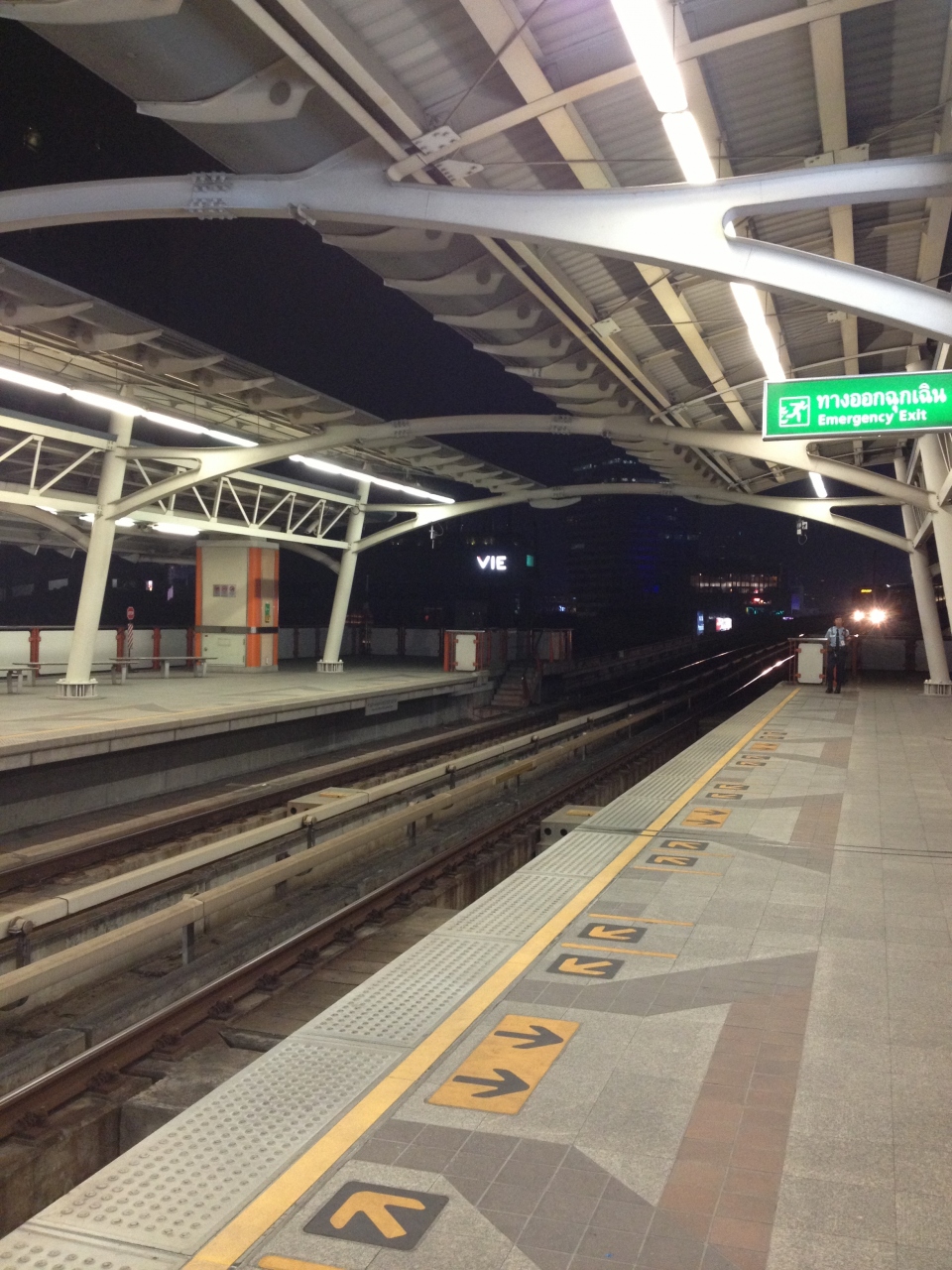 高架鉄道BTSとエアポートトレインの乗り継ぎができるのがこの駅です。それぞれのホームは少し離れていますが、歩いて3分程度なので重い荷物を持っていても問題なしです。ただ、夜遅い時間ですと乗り継ぎの通路が少し暗いのが気になりました。