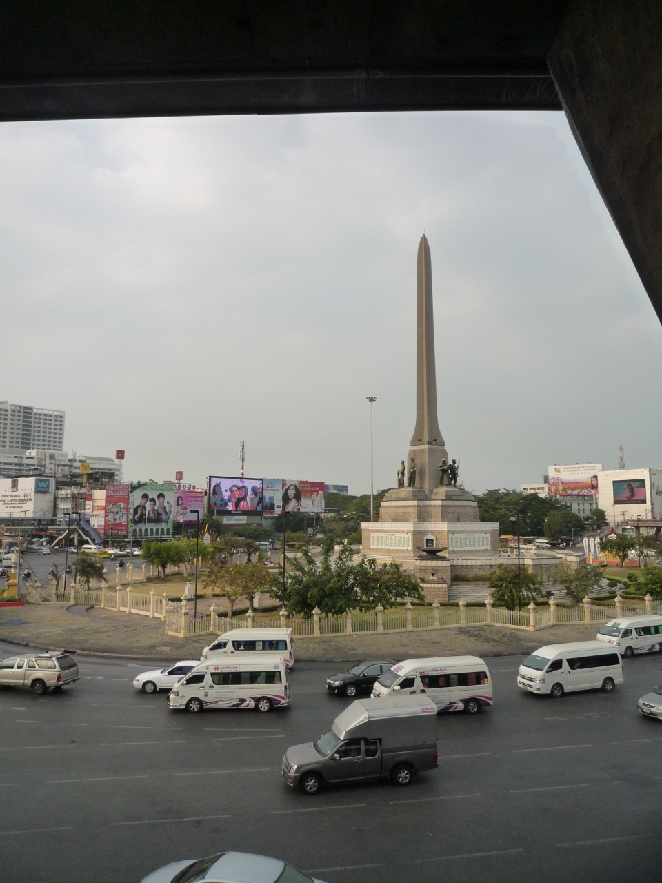 アユタヤへのミニバス乗り場に行くために利用したのがこちらのビクトリアモニュメント駅。モニュメントを囲む形でロータリーになっており、いつも大量の車でごったがえしています。周辺には会社が多いのか、スーツを来た乗降客数が多いようでした。駅からは下に降りなくても歩道橋がロータリーの周りに通っているため、便利でした。