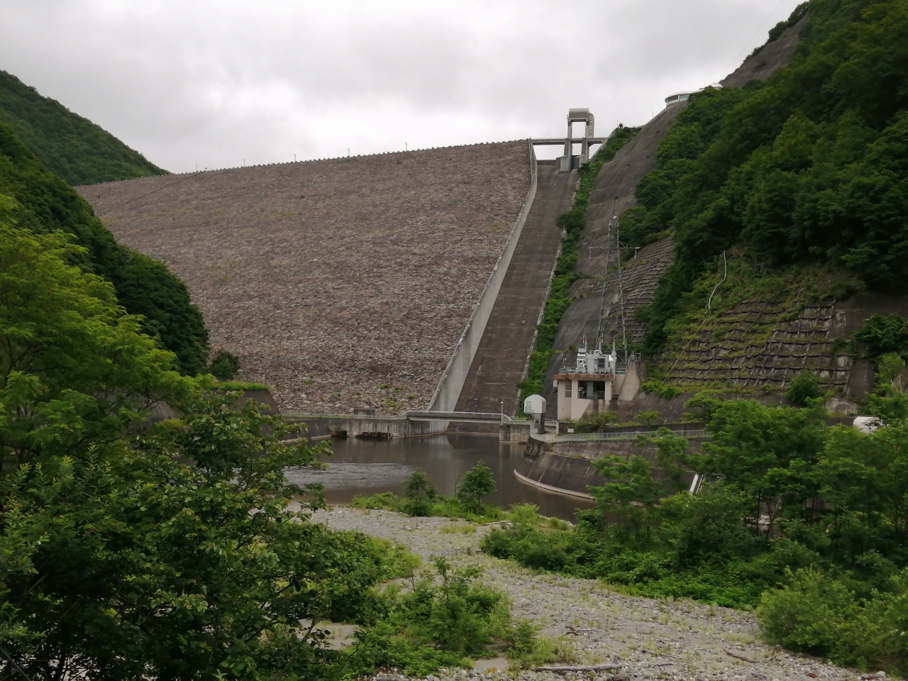 水上高原からさらに山に入った場所にあるダムです。ロックフィル方式のダムで、ダムの下側から眺めた景色が一番良いと思いました。