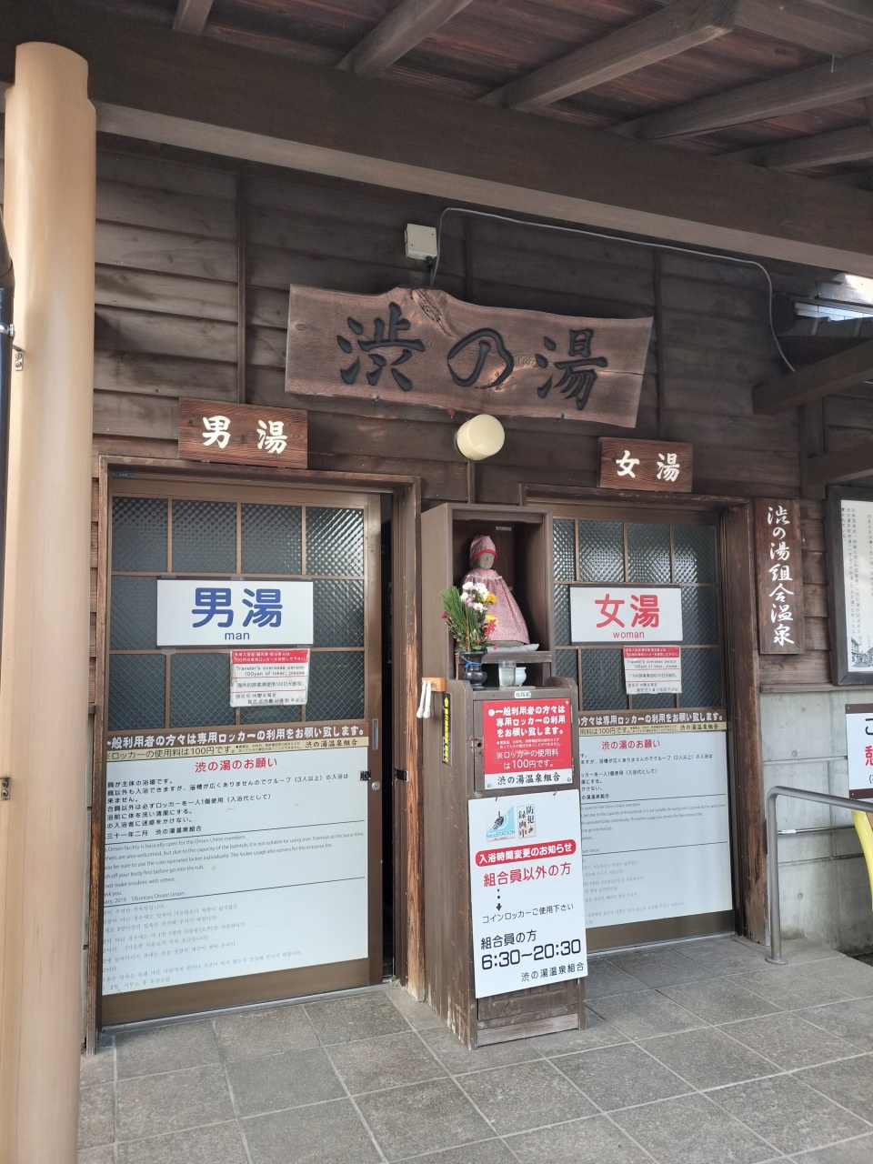 建物は意外と大きいです。脱衣所に入ると神棚もあり、大事にされているお風呂なんだと思いました。浴室に入ると大きな小判型の湯船で、お風呂は黄金色。お風呂をあがった後もポカポカが続く良いお湯でした。- 旅行時期