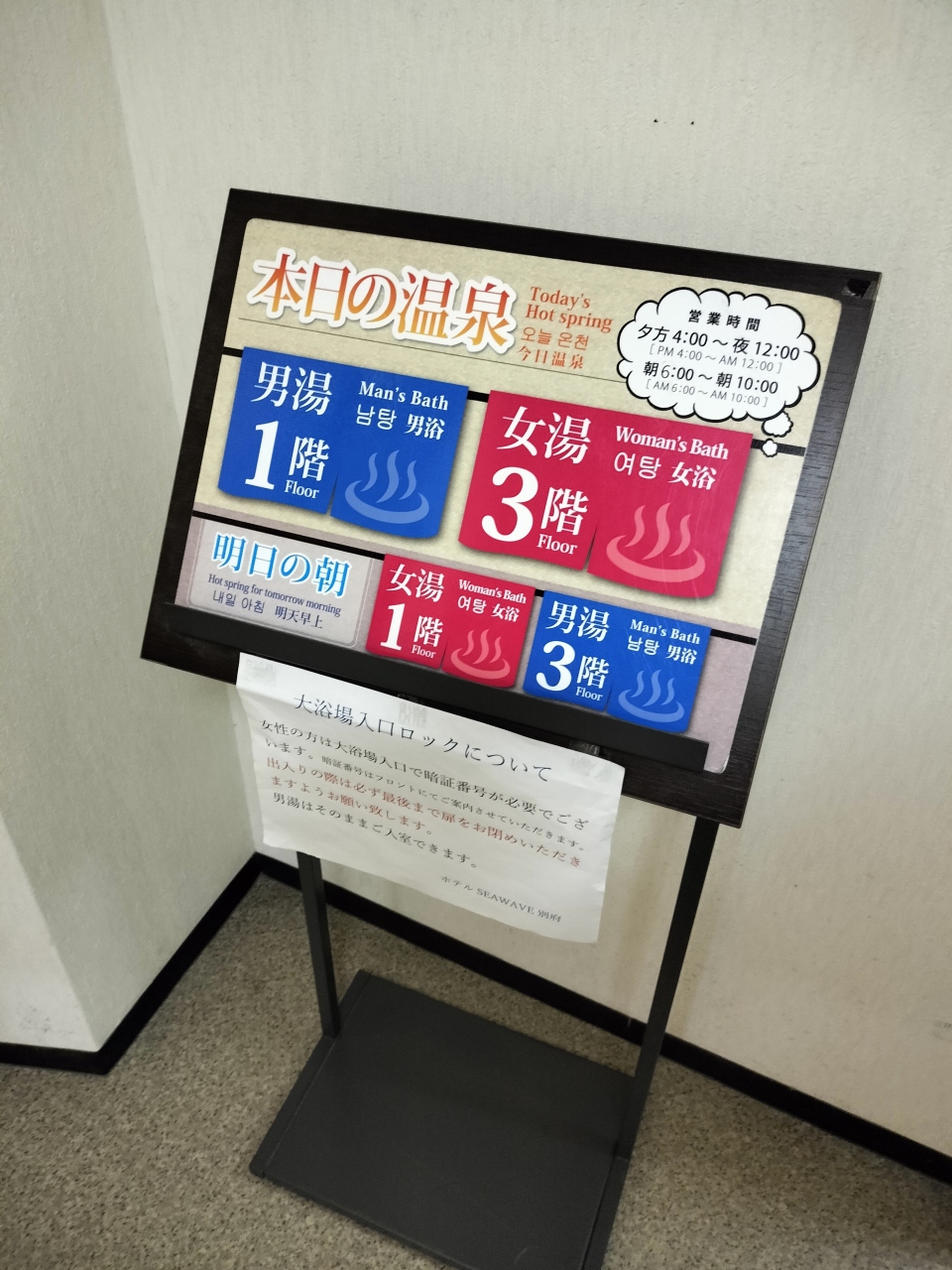別府駅の目の前にあるホテルです。こちらのホテルの姉妹店である、ホテルスターに宿泊していたのですが、こちらの温泉が無料で利用できるということで、お風呂に入りに伺いました。ホテルの受付と温泉がある建物は別で、接続通路を渡る必要があります。