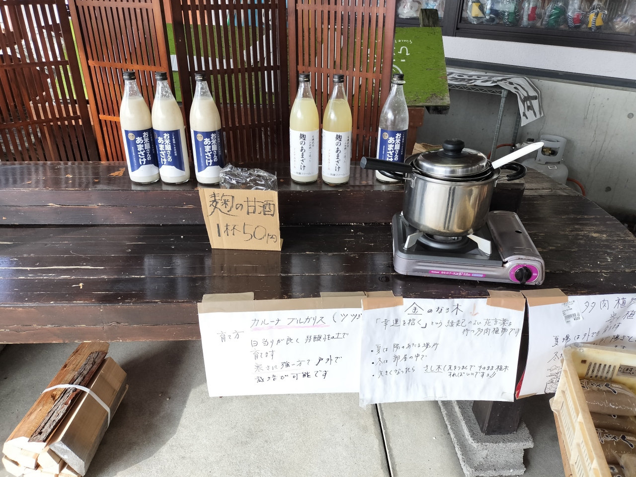 九重エリアから別府方面に戻る際に偶然こちらを見つけて立ち寄りました。道の駅という感じでおみやげエリアとイートインができる食堂もありました。食堂メニューを見ると美味しそうな地の料理があり、ちょっと惹かれましたが、湯布院でランチの予定だったので我慢。年末だったせいか外で甘酒を売っていました。50円だったので購入。土地のお米を使っていてお勧めということでしたが、寒かったこともあり、とても美味しく頂きました。