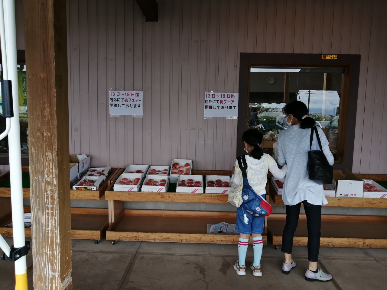 桃を買いに訪問しました。山梨で格安で桃をゲットするには共選所が有名ですが、競争率がとても激しいようだったので、こちらを訪問。時間が少し遅めでしたが、はねだしの桃がひと箱のみ残っており、お得な価格で無事購入することができ良かったです。もちろん、はねだしでない桃もちゃんと売られています。