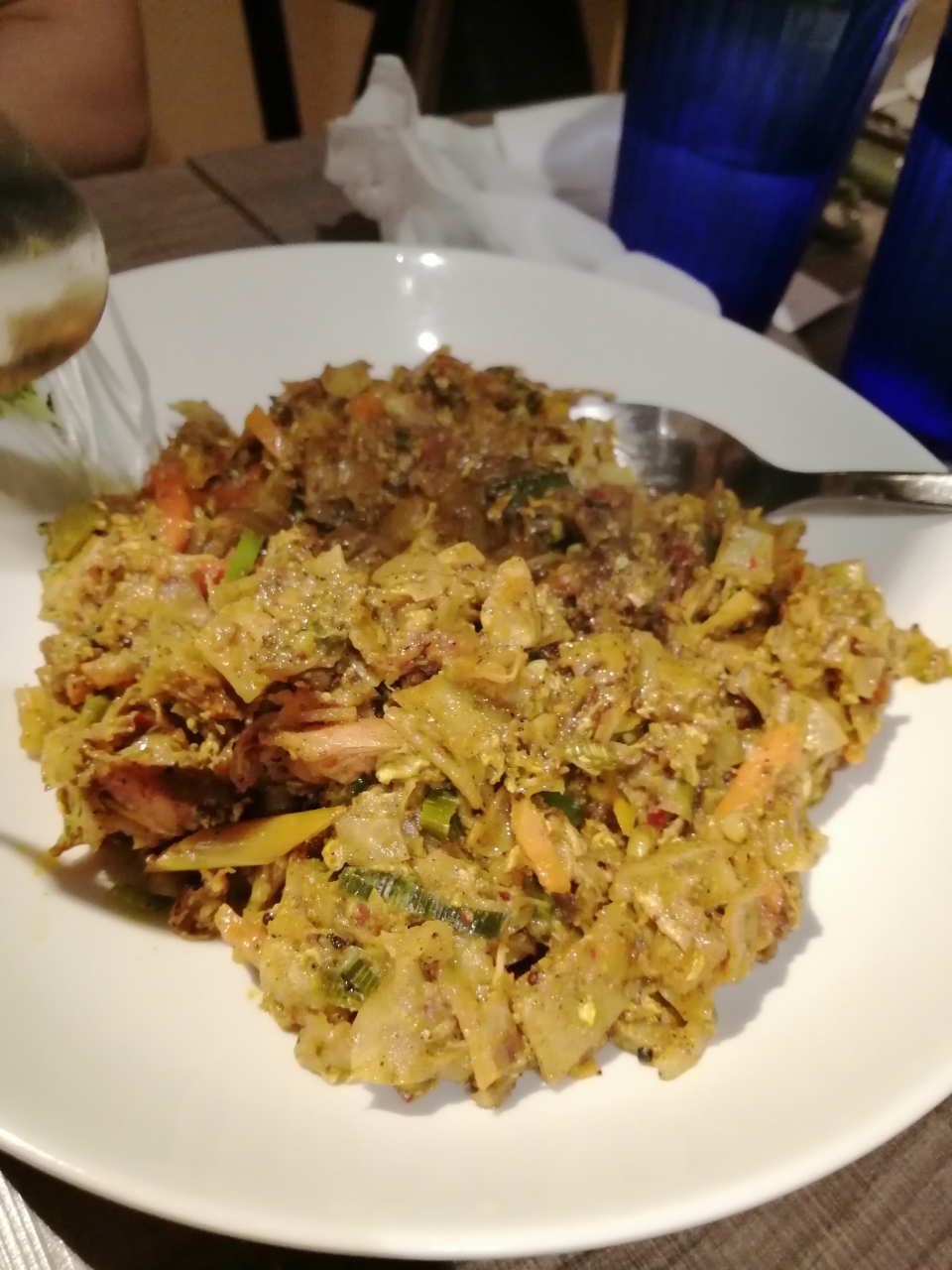 国立近代美術館を訪れたあと、神保町付近でランチをしようとこちらを訪れました。神保町駅から徒歩で数分とアクセスはとても良いです。名物のスリランカ式お弁当のランプライスとスリランカ風そばめしのチキンコットゥロティをオーダー。ランプライスはバナナの皮に包まれた具入りの混ぜご飯と言う感じで持ち帰りにちょうど良いとおもいました。チキンコットゥロティはボリュームも満点で期待通りの味でこちらも美味しく頂けました。