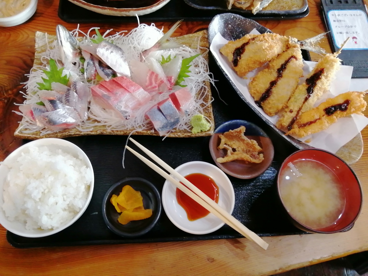 個人的にはお刺身セットに、アジフライトッピングがお勧めです。テラス席があるのですが、冬でも晴れている場合は店内よりもポカポカで良いと思いました。- 旅行時期