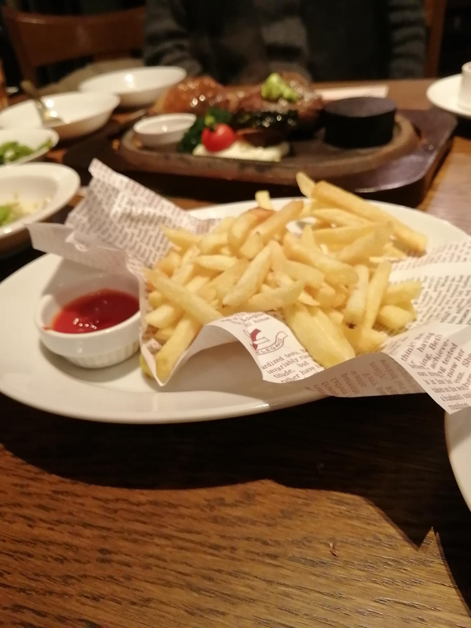 個人的に美味しかったのはハンバーグ。熱々の鉄板に乗って提供され、テーブルの上で最後の仕上げができます。
