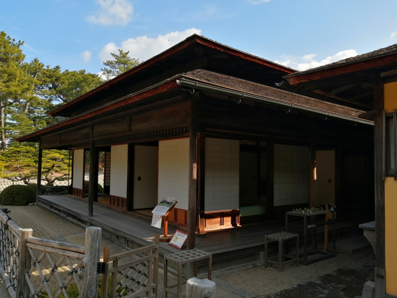 美観地区のど真ん中、観光案内所の隣にあります。入り口の門を入ると、年末年始だったせいもあるのがとてもキレイな門松兼お花が飾られていました。