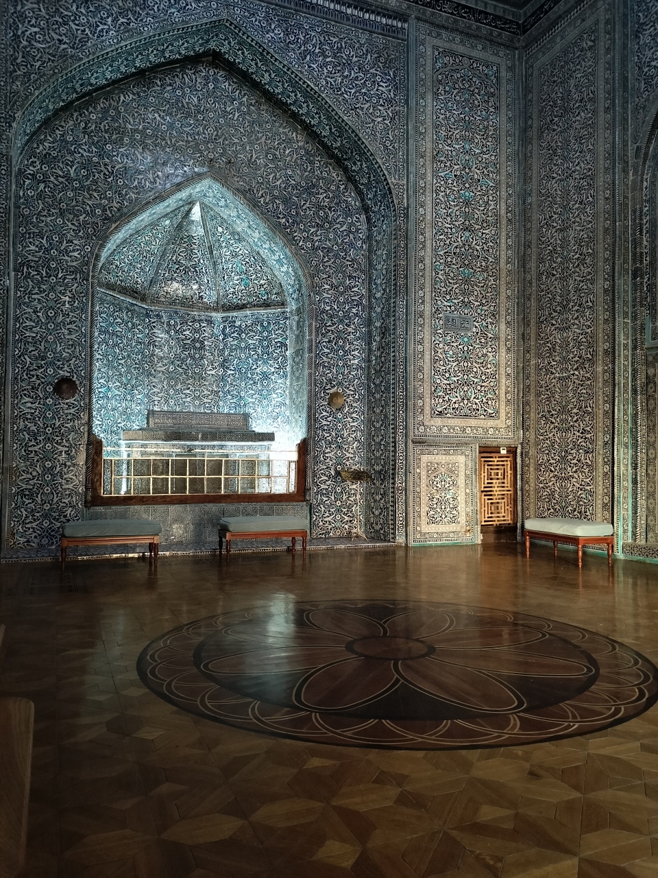 イチャンカラの共通チケットではこちらは入場できないのですが、今もなお現役の雰囲気で地元の人が多く訪れていました。観光客はそこそこのお値段が入場料としてかかりますが、内部はウズベキスタン全てのエリアで見てきた中でも上位に入るくらいの美しさでした。内部は荘厳な雰囲気なので、暑さも忘れてゆっくり休憩がてら雰囲気を楽しみました。