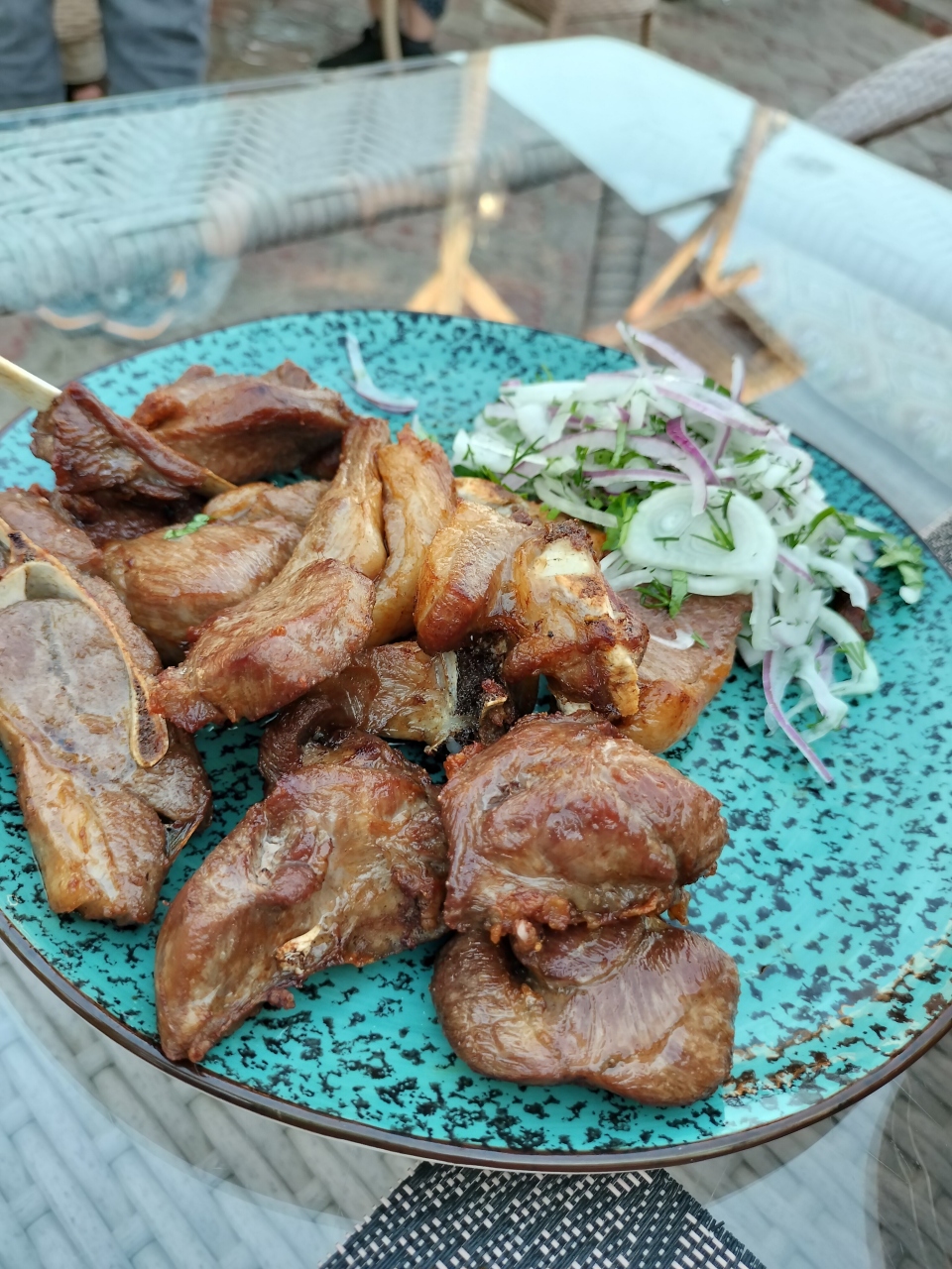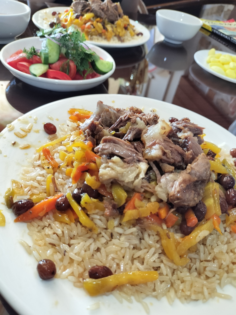 ブハラの城壁から出てすぐにあるラビハウズの少し北側にあるレストランです。美味しいという記事を読みおとずれました。とてもちゃんとしたレストランで2階は眺めもとても良いです。メニューもウズベキスタンの定番料理からお店の名物のお肉までどれも美味しく頂きました。とても人気のお店で2回目に行った時は2階は満席で一階のテーブル席へ。こちらもゆっくりできて良かったです。店員さんもテキパキ働いて気持ちも良かったです。
