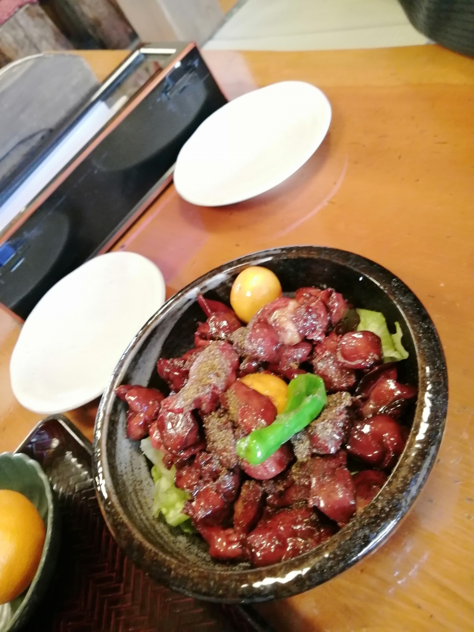 内部は和風な感じなのですが、木製の5重の塔が立っていたりとちょっと独特です。天丼ともつ煮を頂きました。初めてもつ煮を食べましたが、大きいサイズにしたらかなりのボリュームで、小さいサイズでも良かったかなと。でも美味しく頂きました。- 旅行時期