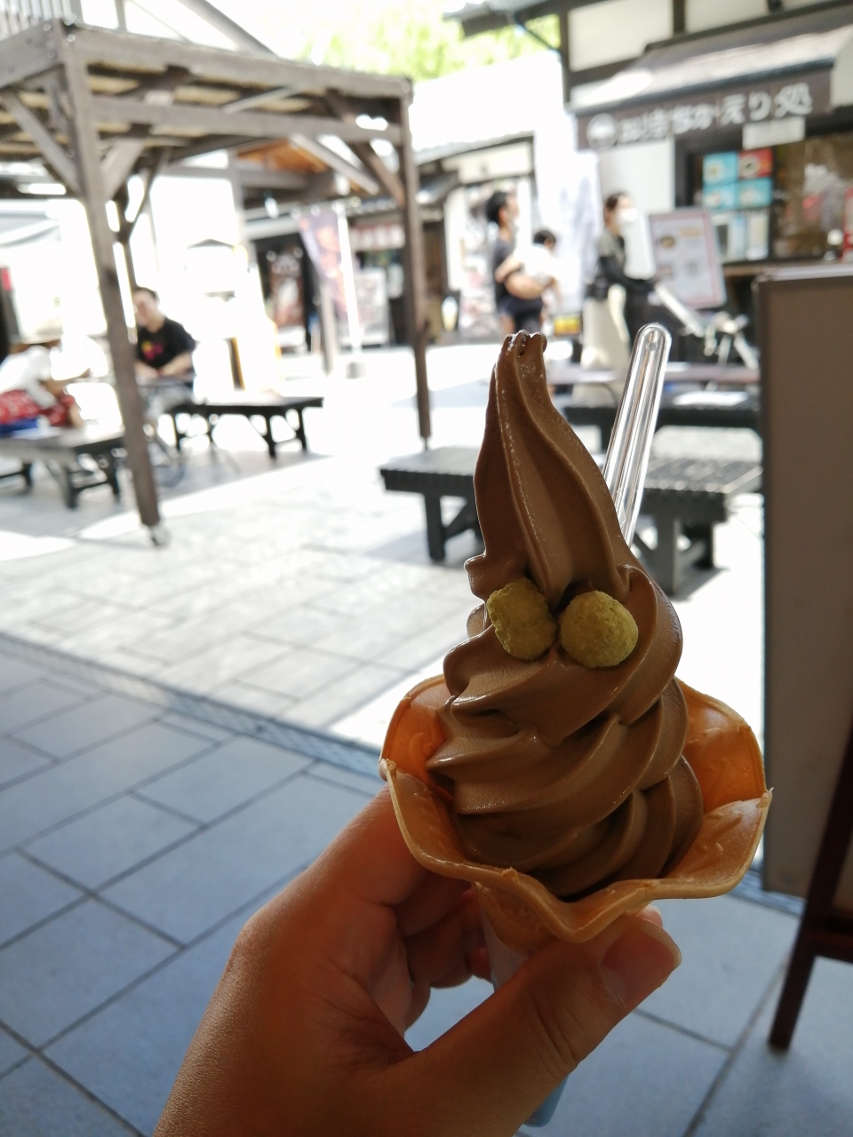 熊本城の受付がある目の前には桜の小路という、飲食店やお土産物店が集まったエリアがあり、その一画にこちらのお店があります。お茶屋さんで、無料でお茶をふるまっていたりしていました。何かスイーツを食べたかったのでこちらのほうじ茶ソフトを頂きました。香ばしい風味で美味しく頂きました。