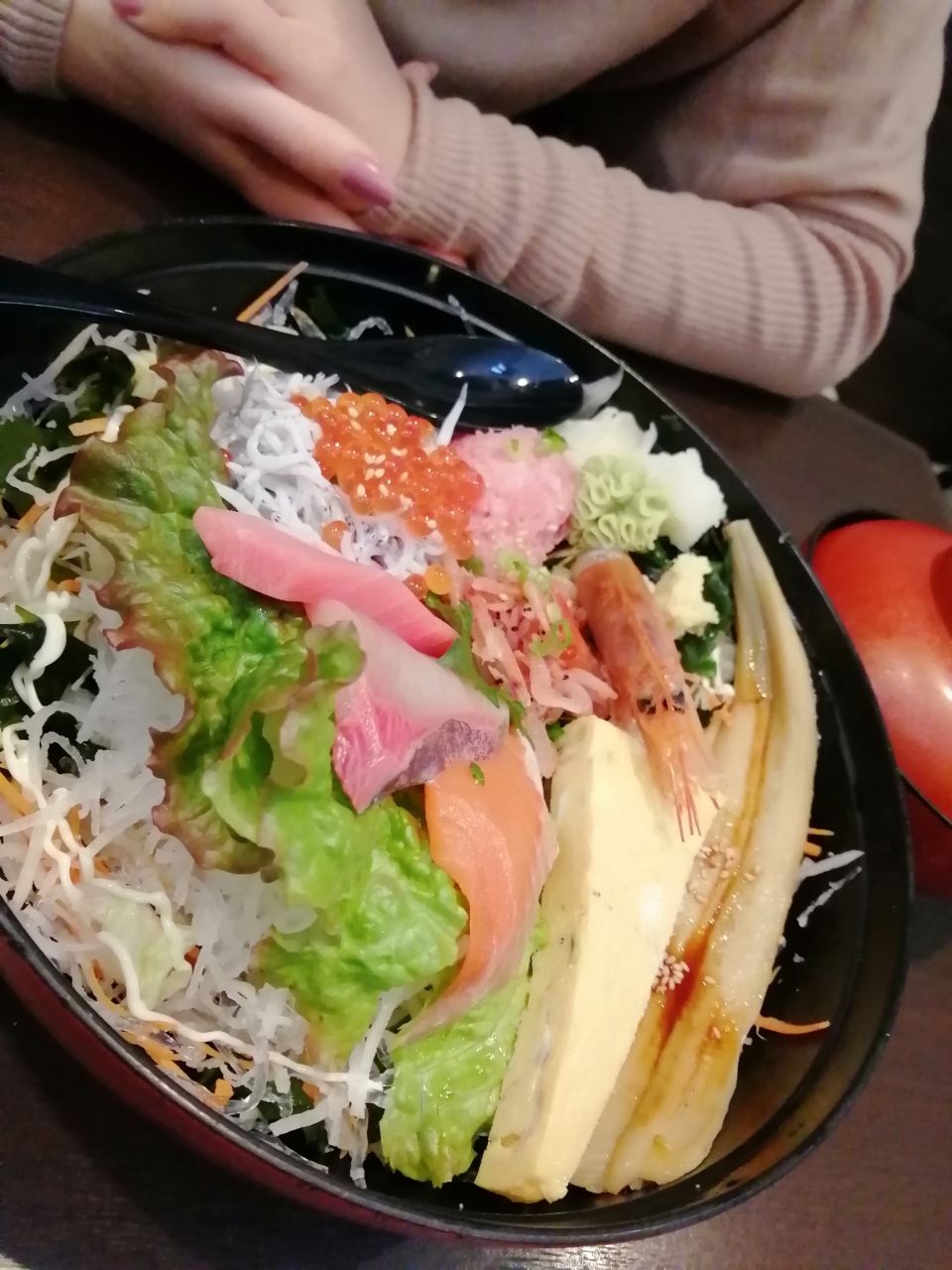 メニューはいかにも江の島という感じでいい感じ。シラスと海鮮の丼ぶりはボリュームもあり、美味しく頂けました。なお、食べログクーポンで、チーズ饅頭のようなものがもらえるのでお見逃しなく。- 旅行時期