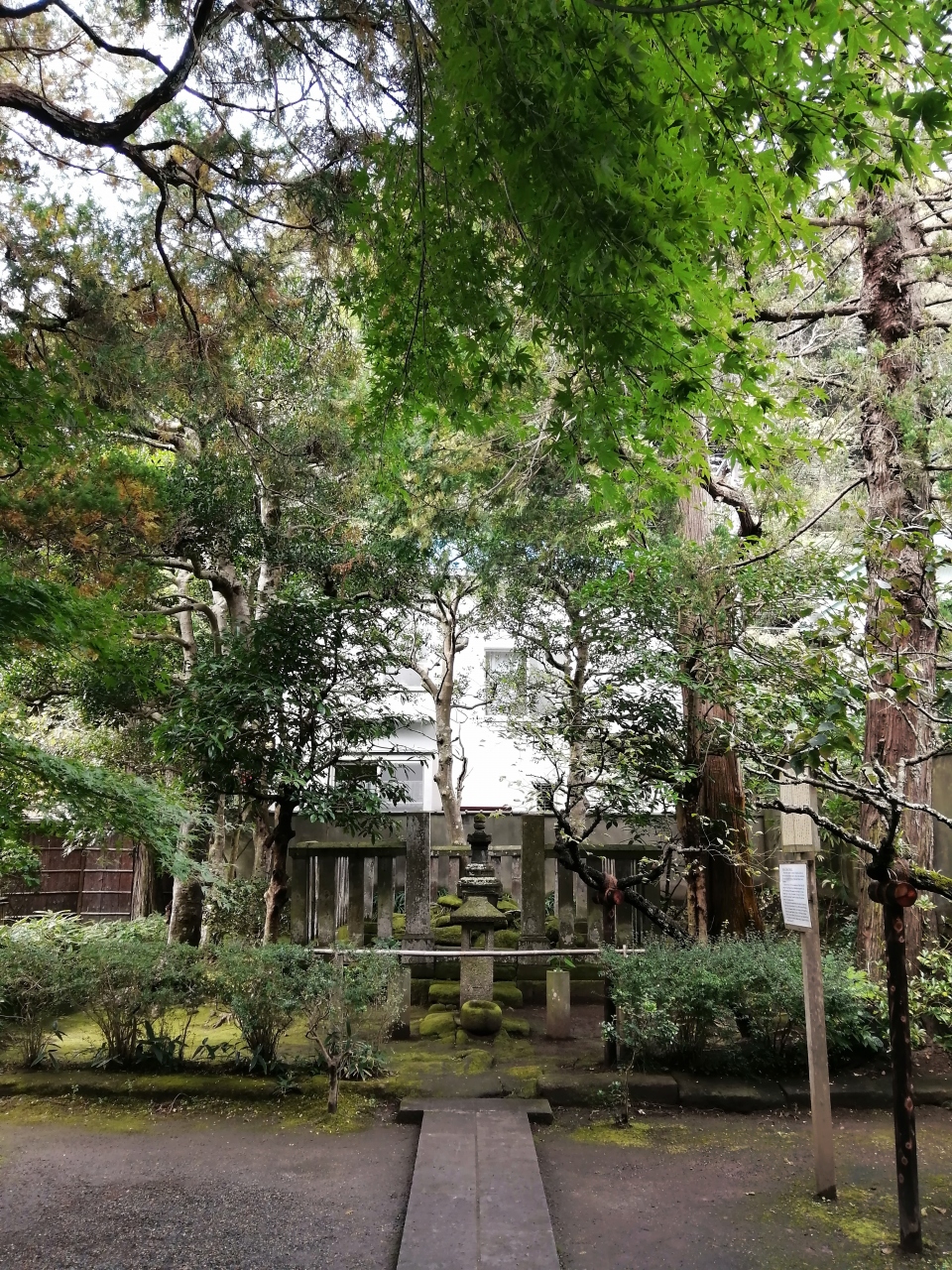 JR北鎌倉駅から徒歩で10分ほどの場所にある明月院の奥に建っています。明月院は結構敷地が広いのですが、一通り見てまわった最後の場所にありました。目の前に茶屋があるので休憩するのに丁度良い場所だと思います。お墓はひっそりと建っていますが、周囲の苔むした感じも相まって独特な存在感を感じました。