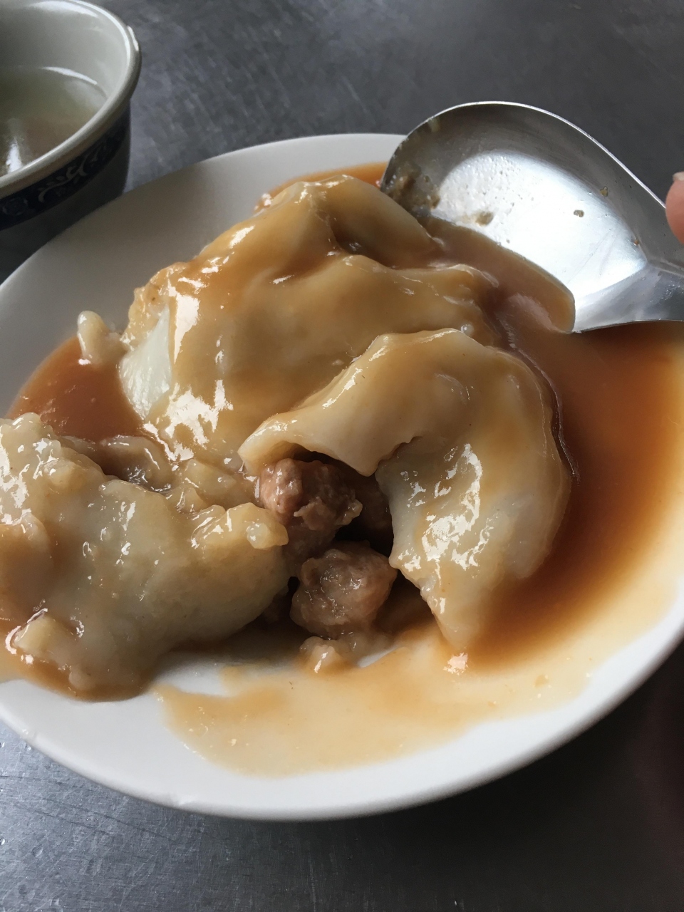台南の中心部にあるエビご飯の有名店です。このお店から数分南に下った場所にもエビご飯で有名なお店があるのですが、そちらはレストランという感じに対して、こちらは地域密着型の飲食店という感じで、台湾に来たと思わせてくれる店舗です。とても人が多くその人気ぶりがうかがえます。店頭で、紙パックにご飯を詰めていたので持ち帰りもできるようです。エビご飯は、嫁が今回の旅で一番美味しかったというほど、出汁が効いていて優しい味でした。