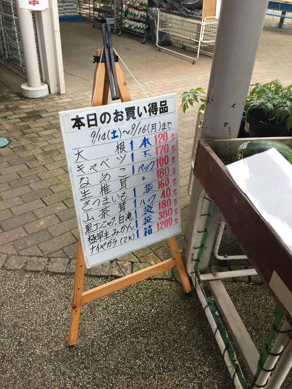JAが営業している産直野菜の市場です。すぐ近くに大人気の道の駅恵みの里がありますが、こちらはそこまで混んでないものの品ぞろえも良く、お値段も気持ち安い印象でした。