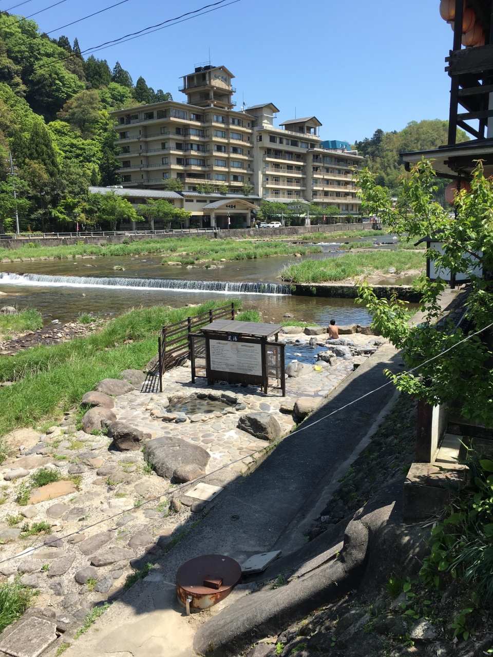 ゴールデンウィーク中に訪れました。三朝温泉の町の中心部の端のたもとに河原風呂はあります。河原に降りるとオープンな脱衣所があり、すぐ隣に湯船があります。