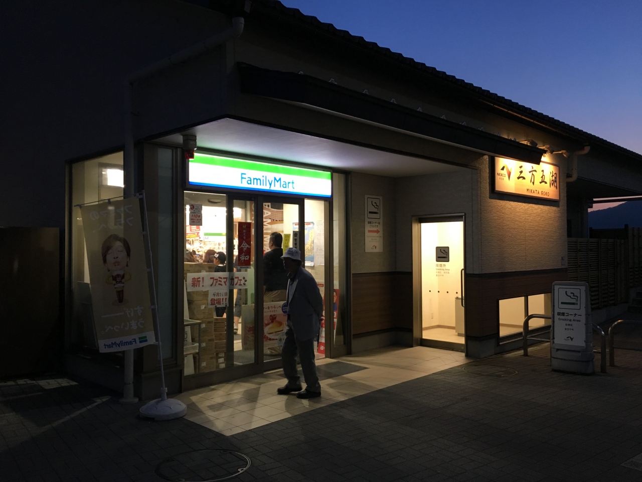 兵庫方面から敦賀に向かう途中にトイレ休憩がてらパーキングエリアに立ち寄りました。パーキングエリアにはコンビニもあり使い勝手は良いと思います。また建物の裏手側からは三方湖が目の前に広がっています。太陽が沈んでしばらくした時間でうっすらと明るさが残る様はキレイでした。