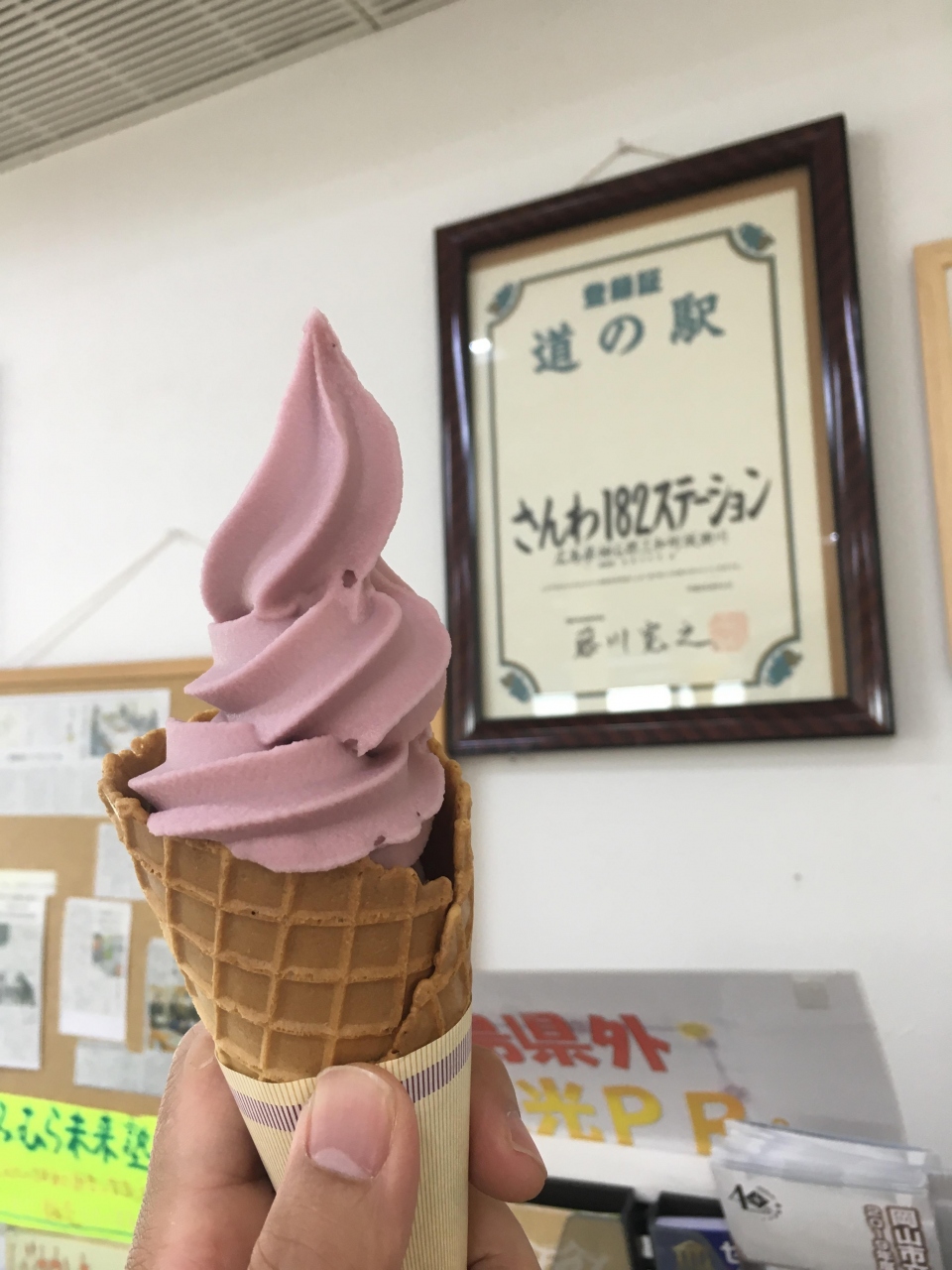 広島から出雲に向かう途中にある、道の駅ゆめランド布野の敷地内にあるアイスクリーム屋さんです。産直野菜が売られている建物の入り口わきにあるのですぐに分かると思います。
