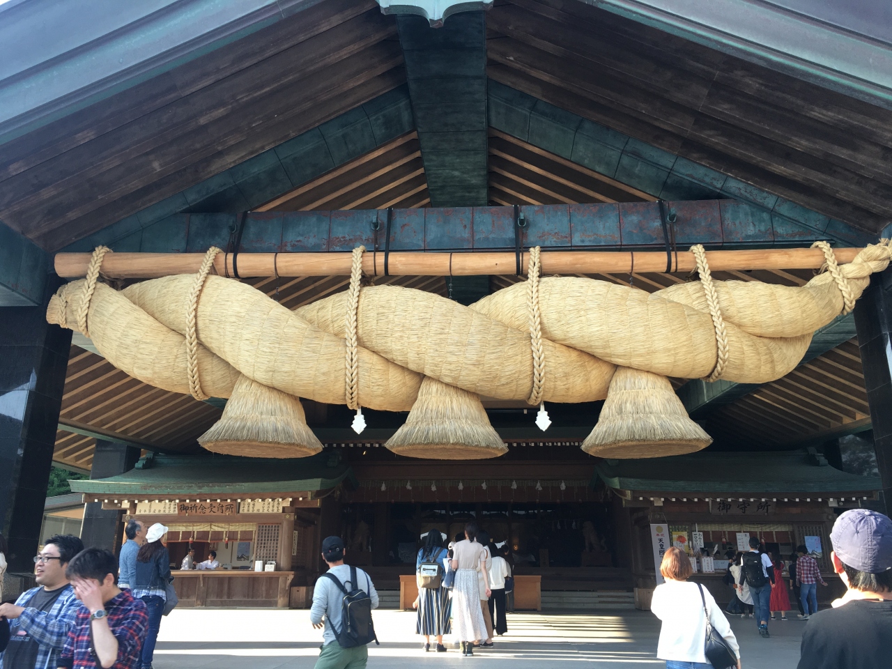 大きな鳥居をくぐり、参道を進むといよいよ大社。とても多くの人で賑わいを見せていました。神様が集まるだけあり、小さな神社など沢山あるので、ゆっくり見て回ると2時間ほどはかかると思います。時間に余裕をもって行くことをお勧めします。- 旅行時期