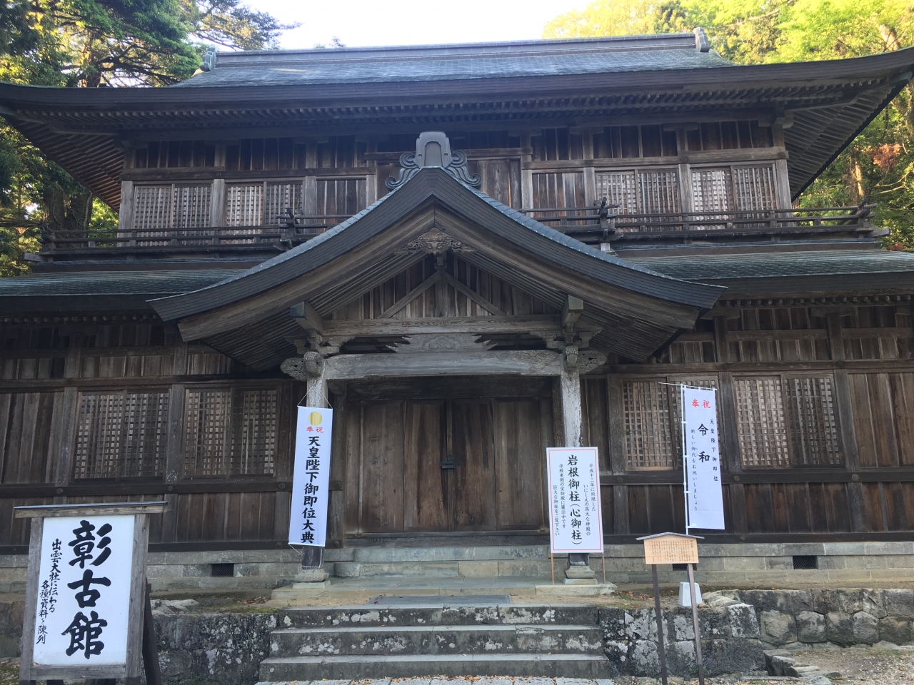 出雲大社の御本殿の左右に立っている細長い建物です。神様たちが出雲大社に集まったときに、神様たちが過ごす場所ということでした。この建物自体はそこまで必見というわけではないですが、こちらからは本殿を横から眺めることができ、あの独特の屋根の様式などをキレイに見ることが出来ます。