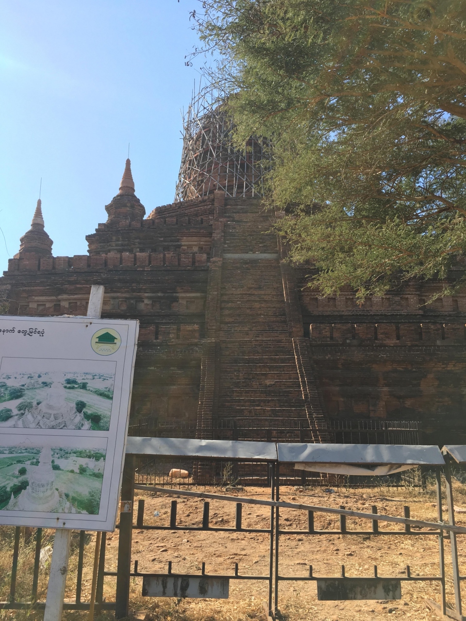 オールドバガンとニューバガンの間にあるミンガバー村の北にある寺院。近くにはミャゼディ碑文で有名なミャゼディ寺院もあるので一緒に見て回る人が多いようで、人ではとても多かったです。特にミャンマー人の方も多かったのが印象的です。
