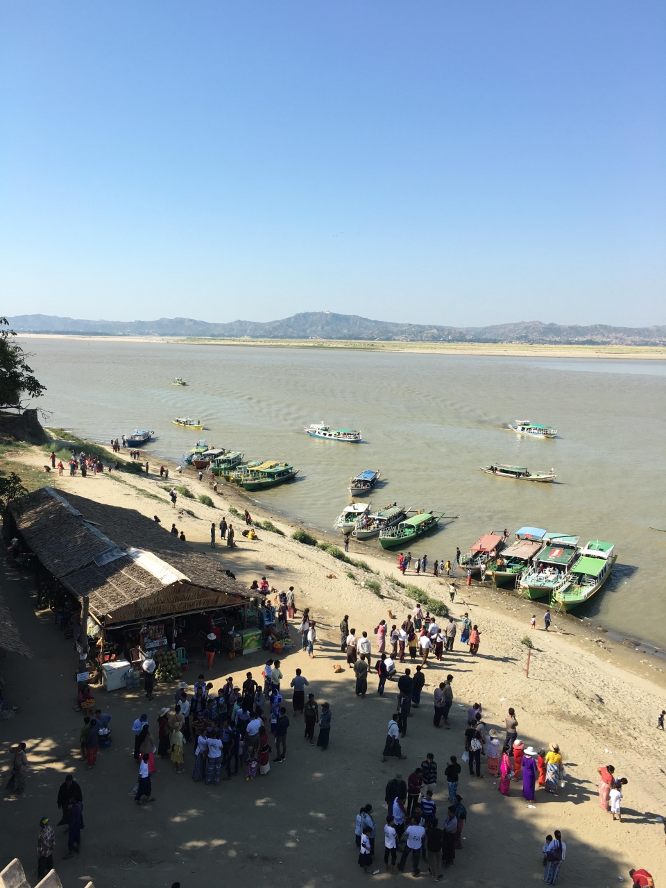 ブーパヤーの崖の真下にある船着き場です。ニャンウーウの村に戻ることもできますし、私が行った時は年末年始だったこともあってか、ミャンマー人の方でいっぱい。対岸の寺院に渡ってお参りをしているようでした。現地の方が旅行を楽しんでいる姿を見れたのも良かったです。
