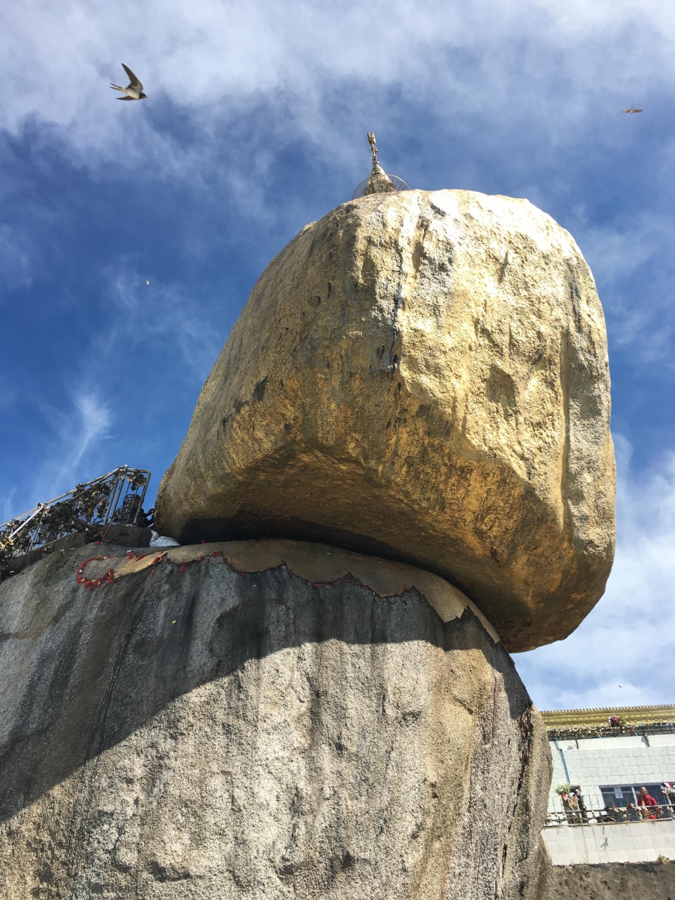 ジープを降り、ゴールデンロックまでは徒歩で15分ほど。途中に外国人用のチケットセンターもあります。ロックがある付近はとても多くの現地の人で賑わい、お弁当を持参して遠足のような感じで微笑ましかったです。- 旅行時期