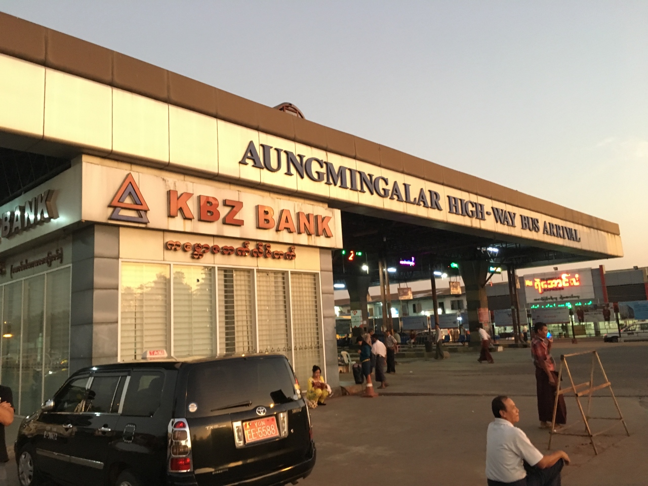 ヤンゴン市内からはかなり遠い場所にあるバスターミナルです。市内からタクシーを使うと10000チャットくらいかかります。ただ路線バスでも行くことができ、200チャットで行くこともできます。出かけた先から戻る時には路線バスは利用価値大です。