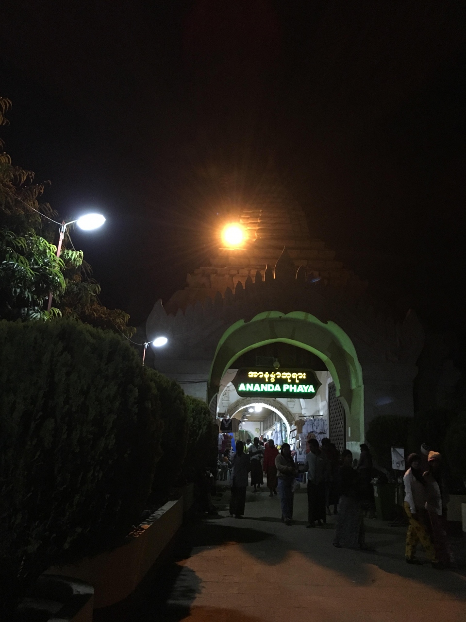 オールドバガンからニャウンウー方面に向かう途中の右手側にあります。非常に大きな寺院なのですぐに分かると思います。入り口に続く参道の両脇には露店が並び楽しい雰囲気で、ミャンマー人の方も多かった印象です。