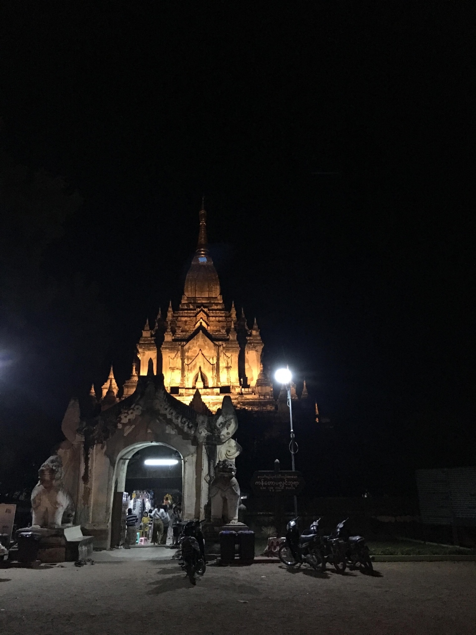 バガンの川に面したエリアにあり、バガンエリアで最も大きなパゴダだと思います。観光客だけでなく現地の方々も多いです。仏塔は大きくキンキンギラギラ。休憩所のような場所もあるので、そこに座ってお参りする方々を見ているのも楽しかったです。