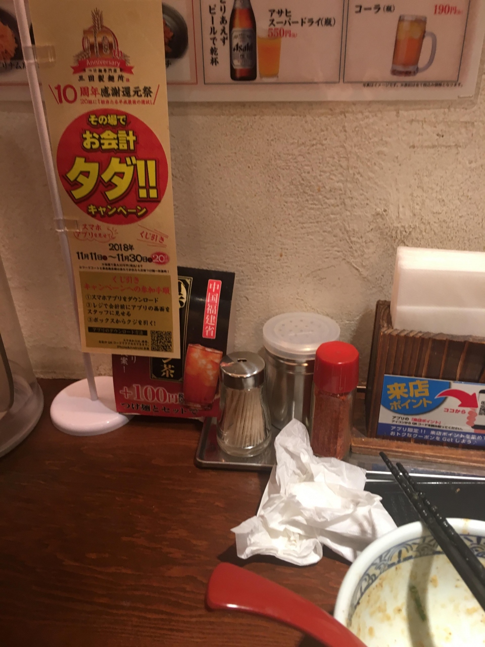 ラーメン激戦区の町田にできた新しいラーメン屋です。油そば屋はなかったと記憶しているので、新しい流れでしょうか。麺の量が無料で増やせるので、コスパ良くお腹いっぱい食べたい人にはお勧めです。普通のラーメンよりもカロリーが低いことが売りのようですが、調味料を入れすぎるとそれも薄れてしまいそうな気がしました(笑)ラーメンは普通に美味しかったです。