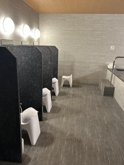 スパは洗い場が三箇所しかない為タイミングによっては混み合いそう。部屋のテレビで混雑状況確認できます。