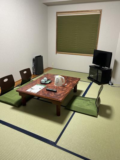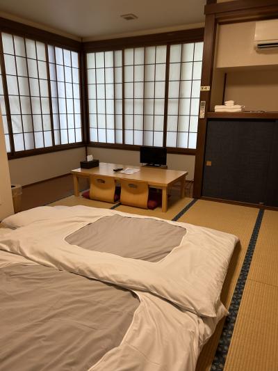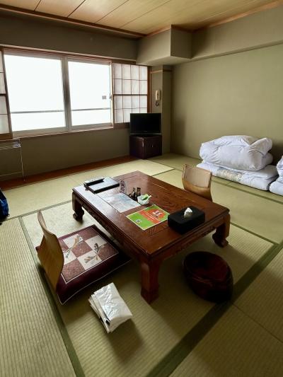 部屋は和室を選択。布団敷きをセルフにするとさらにお安く泊まれます。敷き布団がムアツ布団、試してみたかったのでこれは良かった。