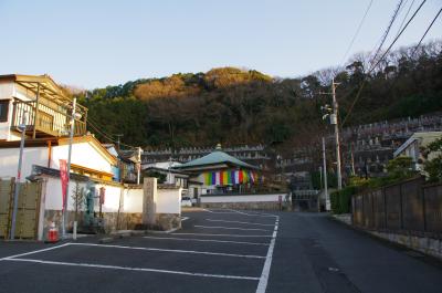 長柄(ながえ)交差点から約400mです。真言宗のお寺。後ろ(北)が桜山の尾根です。