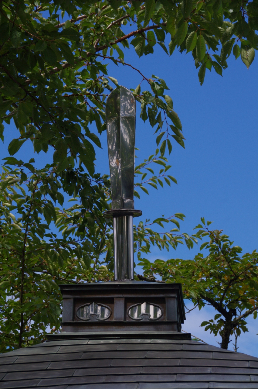 大きなガラスの球「クリスタルボール」も展示されていました。カメラを向けると、どうしても私が写ってしまいました。