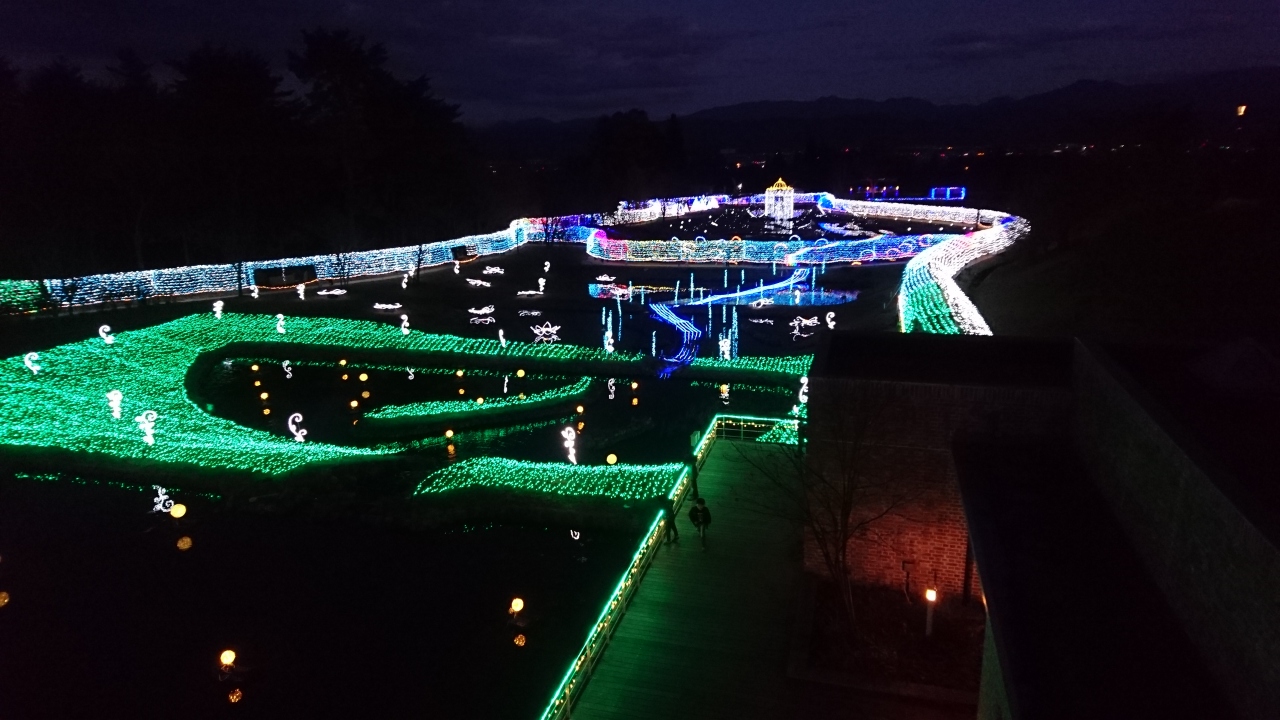 イルミネーション、綺麗でしたよ。満月の日でした。綺麗な空気で、大迫力の綺麗な月でした。田園のイルミネーションと満月の共演でした。- 旅行時期