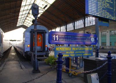 西駅に改札口は有りません。脇に切符売り場の建物が有ります。手前の切符売り場で切符を買おうとしたら、internationalはあっちと言われました。奥の別の棟が国際列車の切符売り場です。ハンガリー語で注文したのですが、通じず、残念。記載した紙を見せて、注文。往復2人分欲しかったのですが、どうも1人分でした。再度声を掛け、もう1人分を買いました。