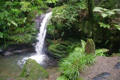 まず、旅館の上流側へ向かいました。旅館の近くにも小さな滝が有りますが、無名のようです。数分で霧降の滝に着きました。水量が少ないみたいで、しょぼい流れでした。