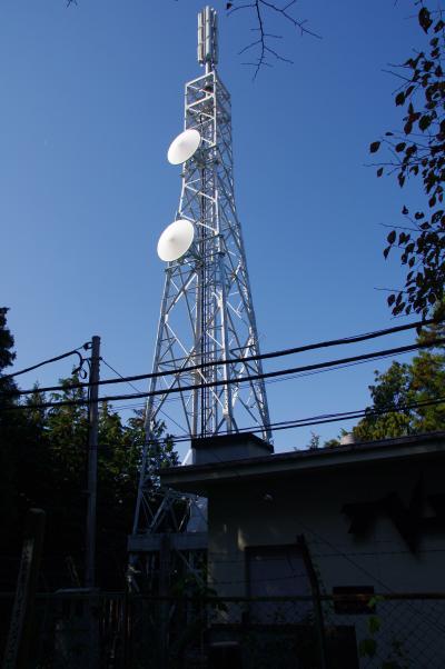 陣見山へ向かいました。林道を歩き始め、林道沿いに有るはずの登山道の最初の登山口が見付かりませんでした。もうちょっと林道を歩き上って、登山道が見付かりました。その登山道の下の方は茂みとなっていました。登山道を頑張って登りました。旧道の登山道と新道の林道が絡み合っています。榎峠に到着。尾根を歩き始めました。旧道の登山道は尾根を通っています。尾根の途中を切り掻いて林道を作ったようで、切り掻かれた辺りの登山道がおっかない急斜面で、ロープが有りました。標高531mの陣見山頂上に到着。全く眺望が有りませんでした。児玉テレビ中継局のアンテナが立っています。