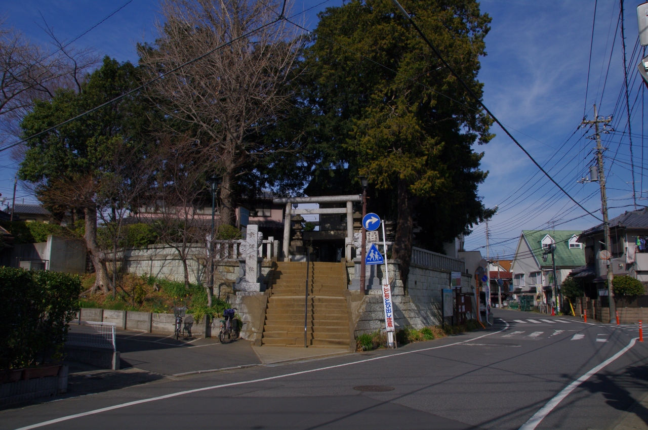 江戸川へ向かう傾斜地の「矢切神社」を通り掛かりました。寄って、お参りしました。会館も有る立派な神社です。