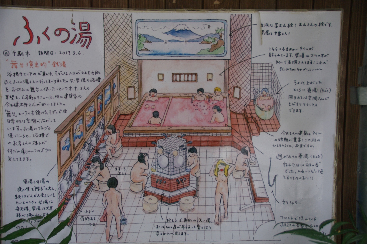 蒸し暑い8月の日曜日、後楽園→本駒込→千駄木と歩き、PM1時頃、この銭湯へ行きました。