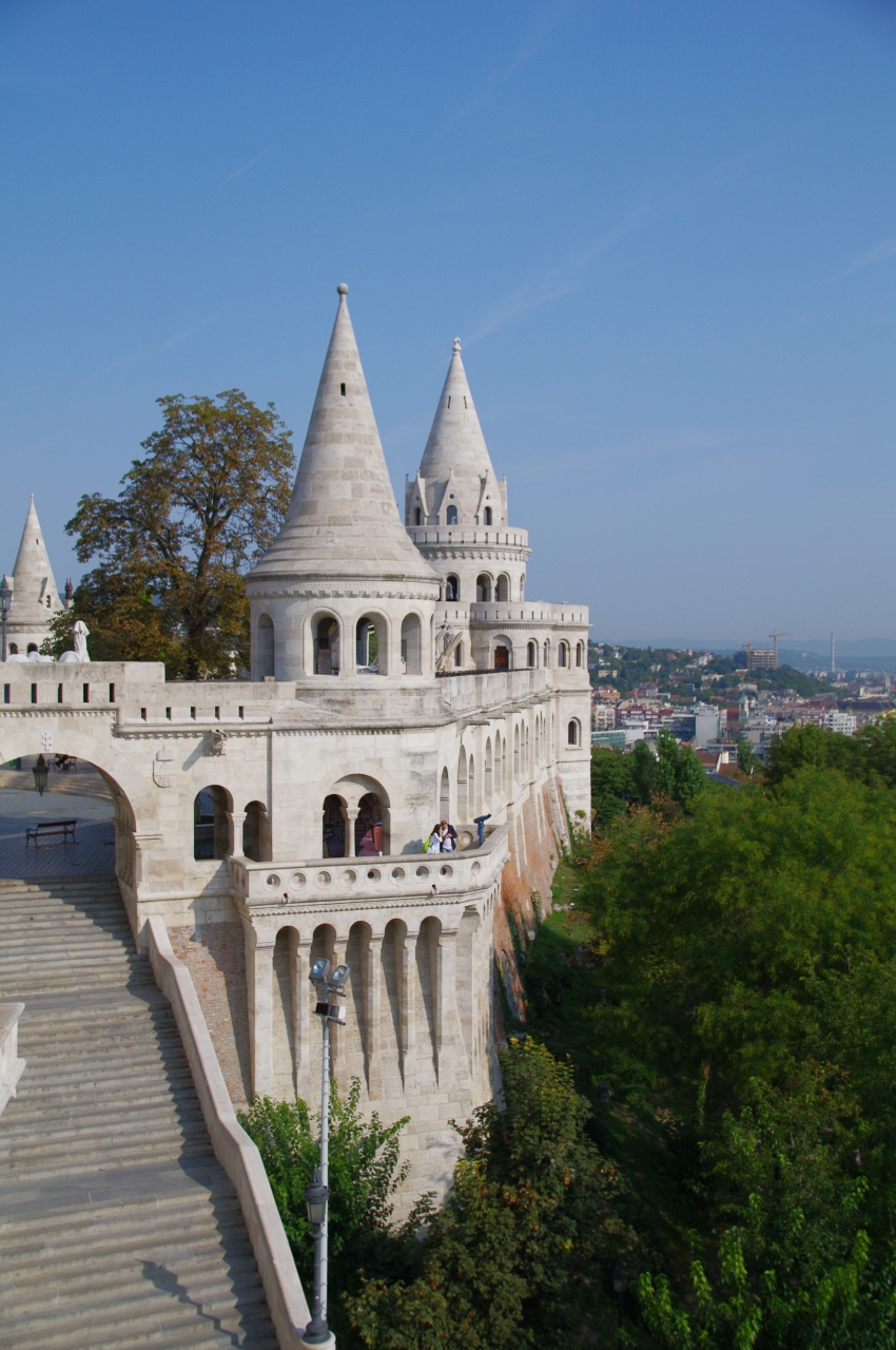 まず、漁夫の砦へ行きました。9時以降は有料となるそうですが、8時50分なら無料とのこと。漁夫の砦は史跡としての意味は無く、観光用の飾りだそうです。この近くではドナウ川で漁を営む漁夫が住まい、魚介類の市場が有ったことに因んだ名称だそうです。白いトンガリ屋根が素敵です。