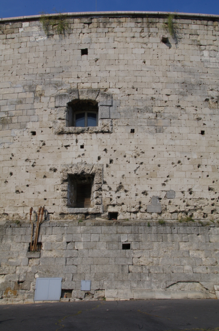 要塞は楕円形で、その周りを一周してみました。要塞には入ったり、上ったりはできませんでした。無数の砲弾の痕が刻まれています。