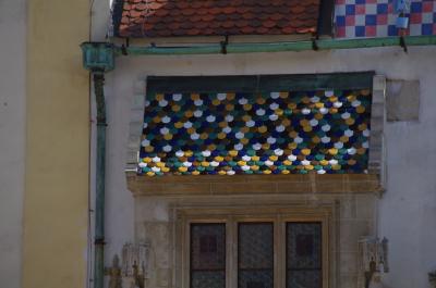 修復工事が完了しており、白亜の尖塔が輝いていました。目を見張るのは、屋根を覆うジョルナイ社製のカラフルなタイル。天気が良くて、青空に映えていました。美しい建物です。