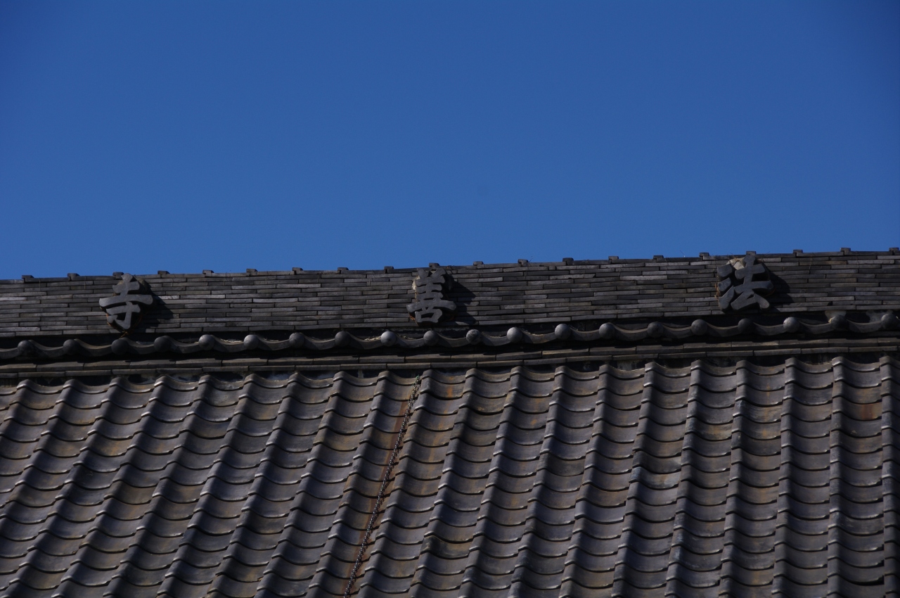本堂の建物が古くなっており、良い感じでした。瓦屋根や漆喰のような仕上げが素敵で、軒下に龍がいらっしゃいます。