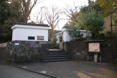 この記念館は美術館です。入口からは建物が見えません。閑静な住宅街の中の庭園となっています。元は薩摩藩の島津家の別邸だったそうです。