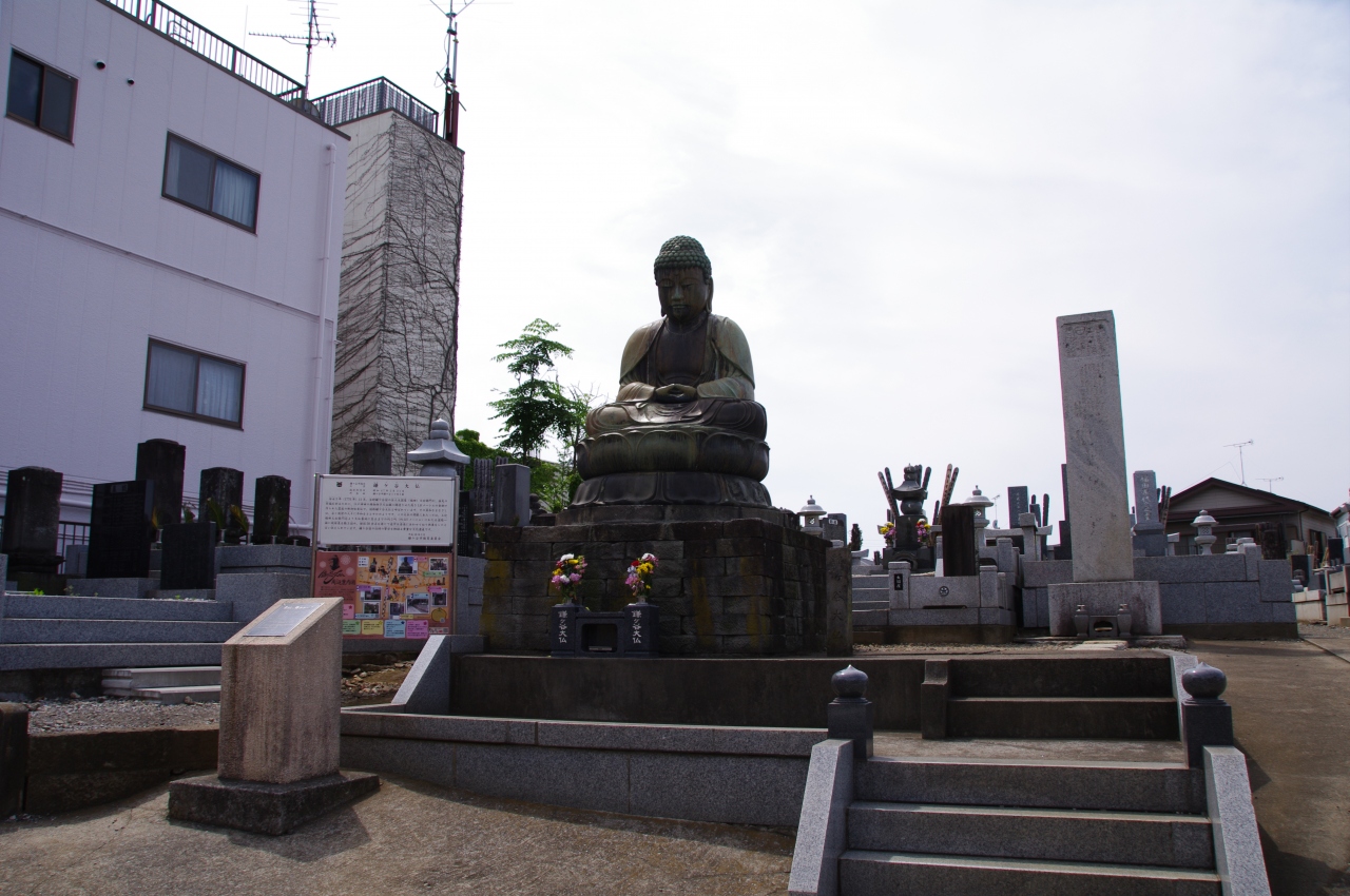 大仏様は青銅製で、高さ1.8m、台座を含めると、2.3mだそうです。安永5年(1776年)に福田文右エ門殿が建立したそうです。墓地の中央に福田家のお墓がいくつも有ります。現在もこの大仏様は福田家が所有しているそうです。