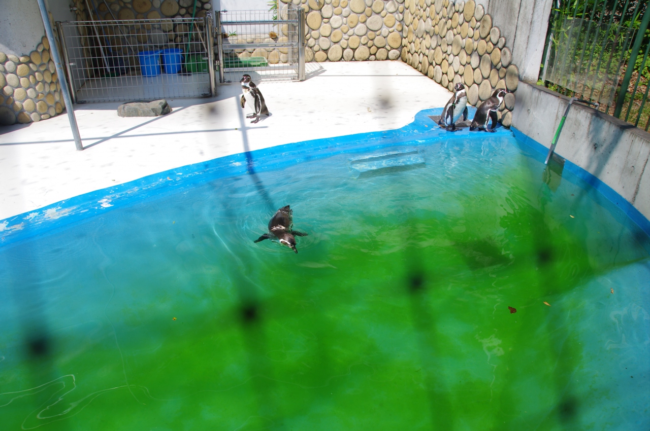 最上部にペンギンさんのプールが有ります。炎天下のプールで、ペンギンさん達が気持ち良さそうでした。