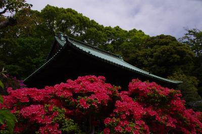 周囲には絵馬堂、妙見堂、四足門、法華堂、宇賀神堂等が建っています。「中山大仏」と呼ばれる大仏様がいらっしゃるはずでしたが、修繕中でした。これは残念。ツツジ等が綺麗でした。北側奥の高台に聖教殿が有ります。これは近代建築であり、寺宝が保管されているそうです。